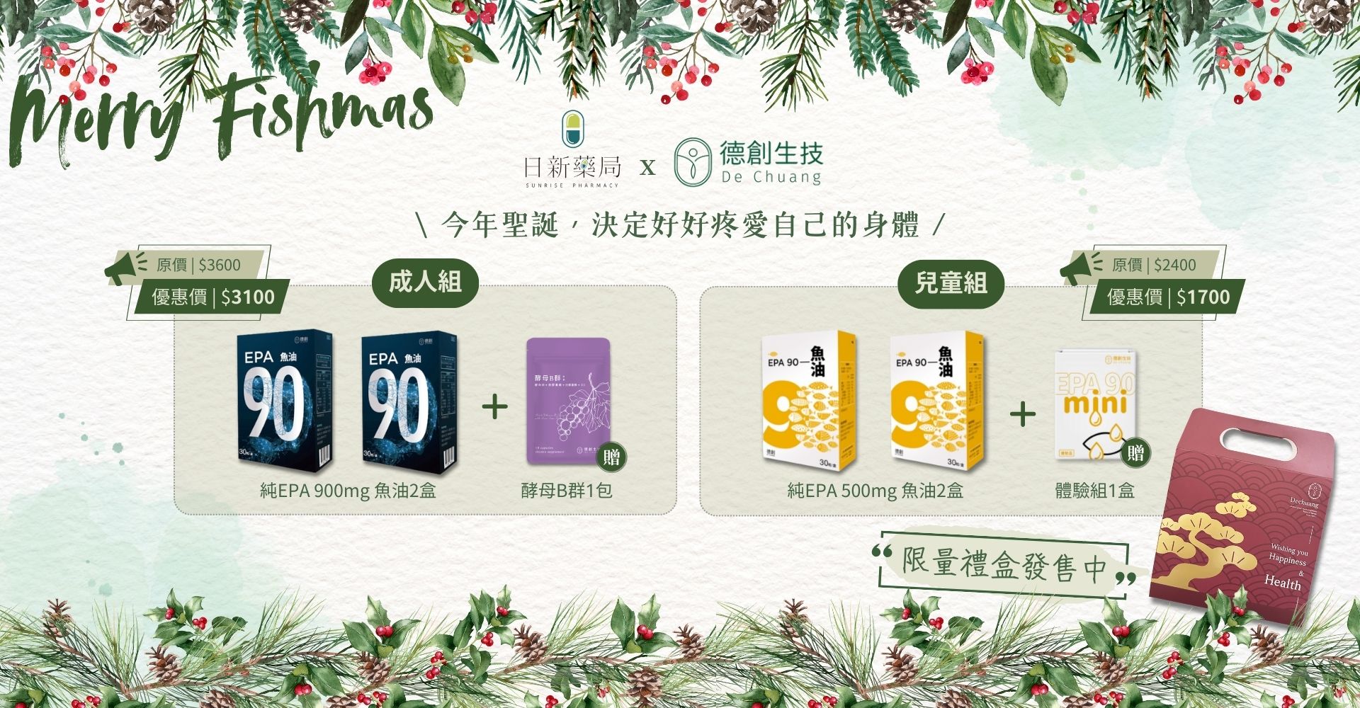 德創生技x聖誕魚油禮盒|EPA90 高機能魚油(30顆/盒 兩入)贈酵母B群膠囊5日隨身包 (10顆/包)