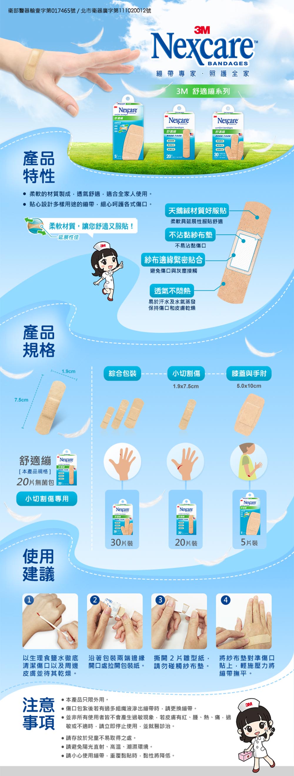 醫療器材許可證所載品名:3M Nexcare 舒適繃 (滅菌)