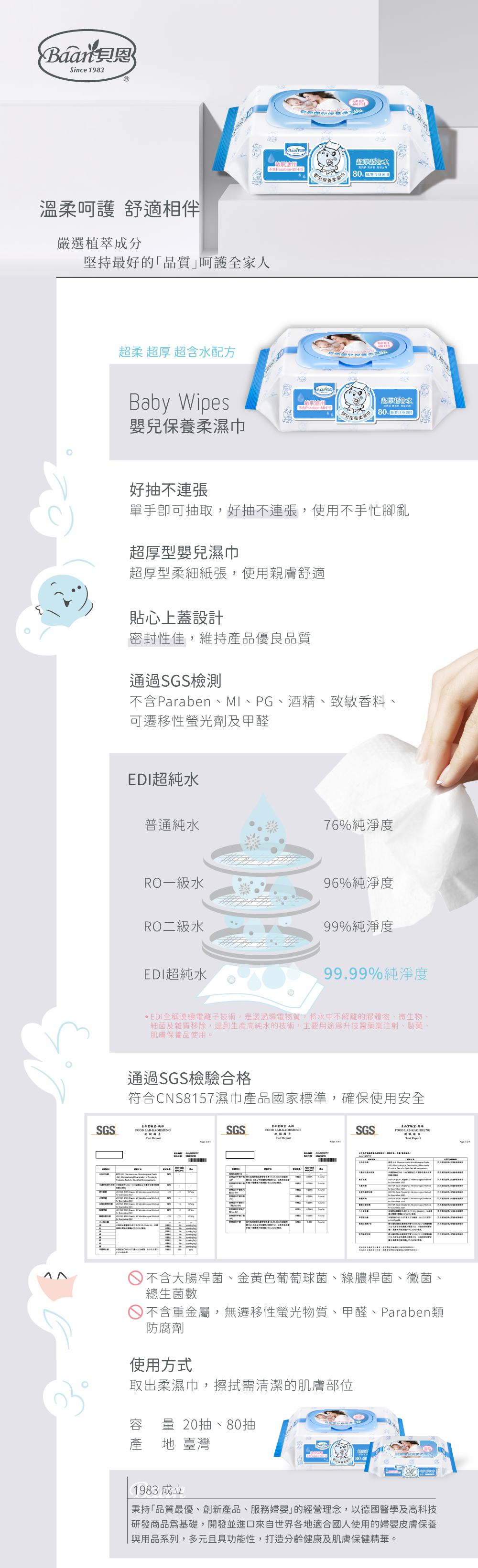 Baan 貝恩嬰兒保養柔濕巾80抽x3包
