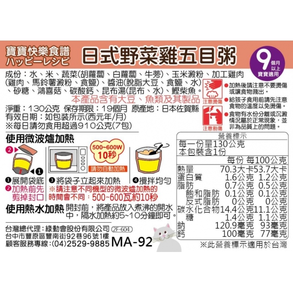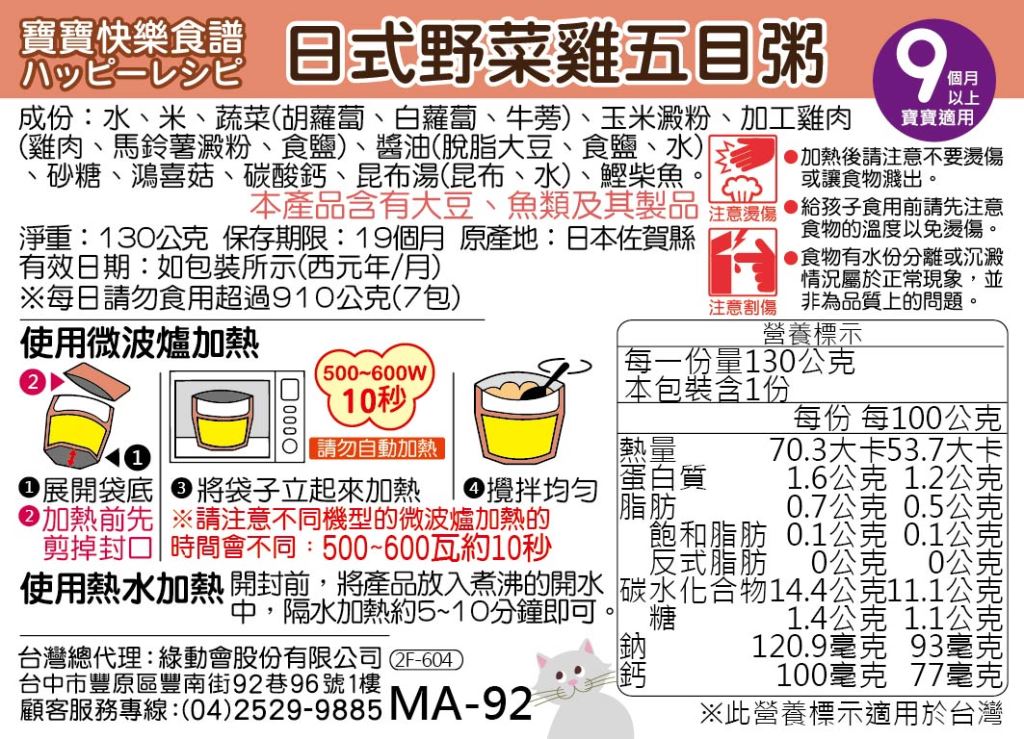 【日本kewpie】日式野菜雞五目粥130g (9M)