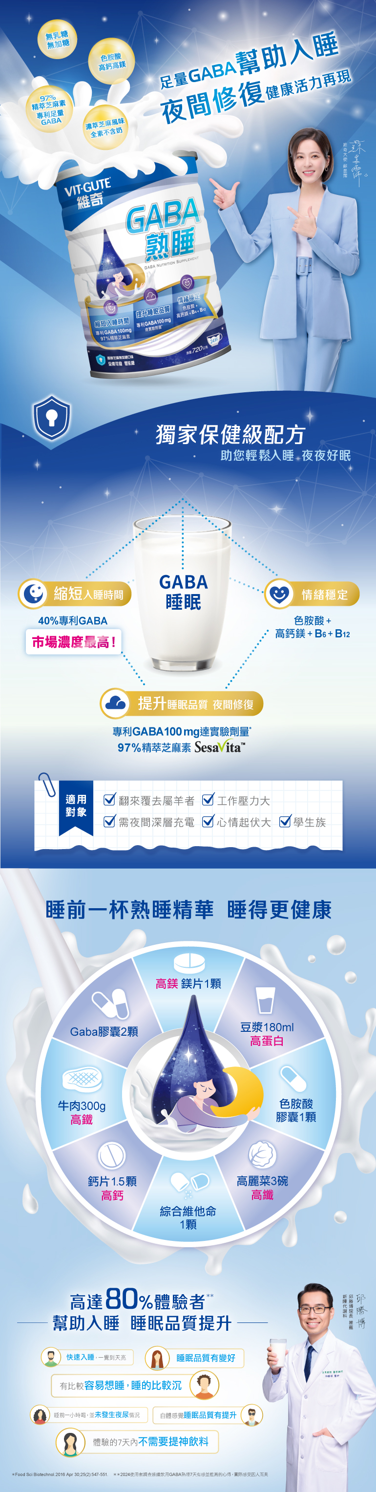 一杯專利足量GABA100,幫助入睡,好好睡一覺健康活力再現