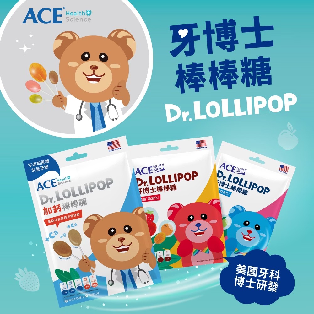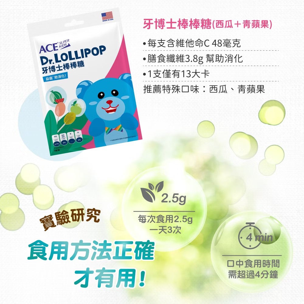 【ACE】SUPER KIDS牙博士無糖棒棒糖8支/袋 |草莓+柳橙