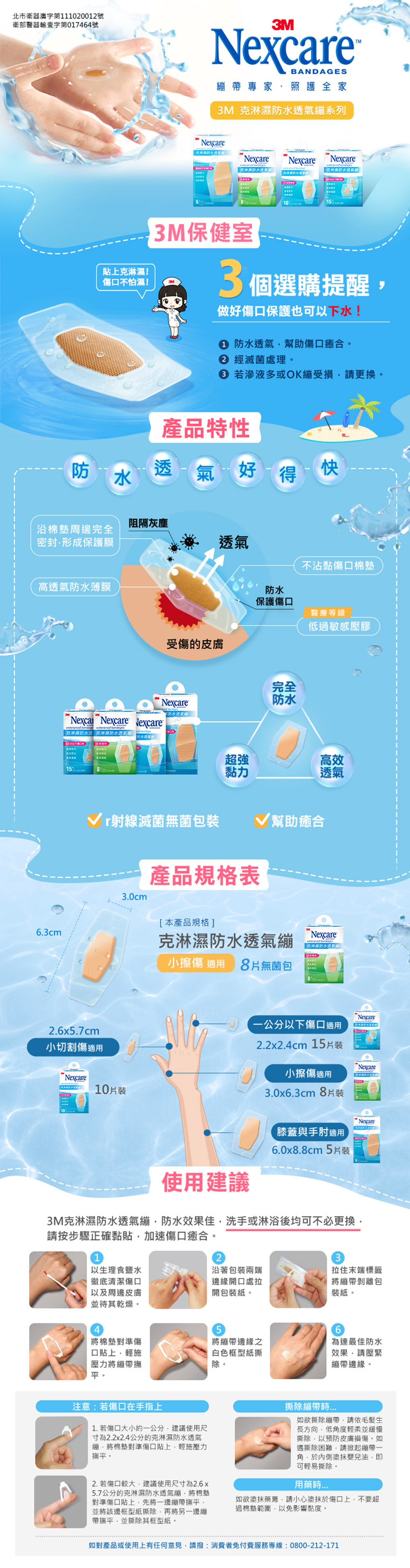 3M-克淋濕防水透氣繃(膝蓋與手肘傷口適用)-5入
