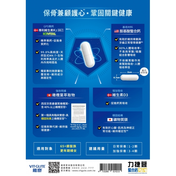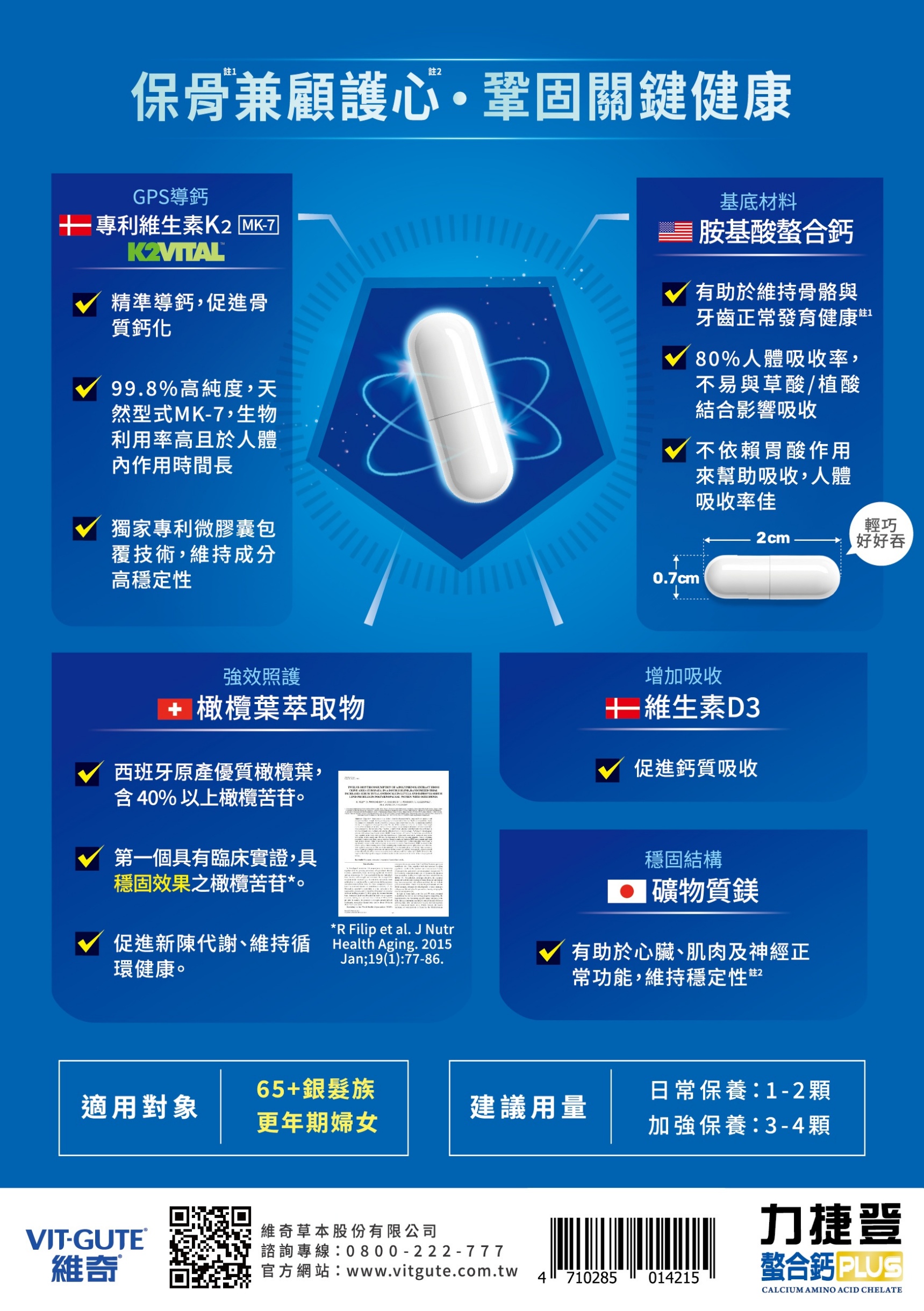 • 維奇 力捷登PLUS 螯合鈣植物膠囊 60顆/盒