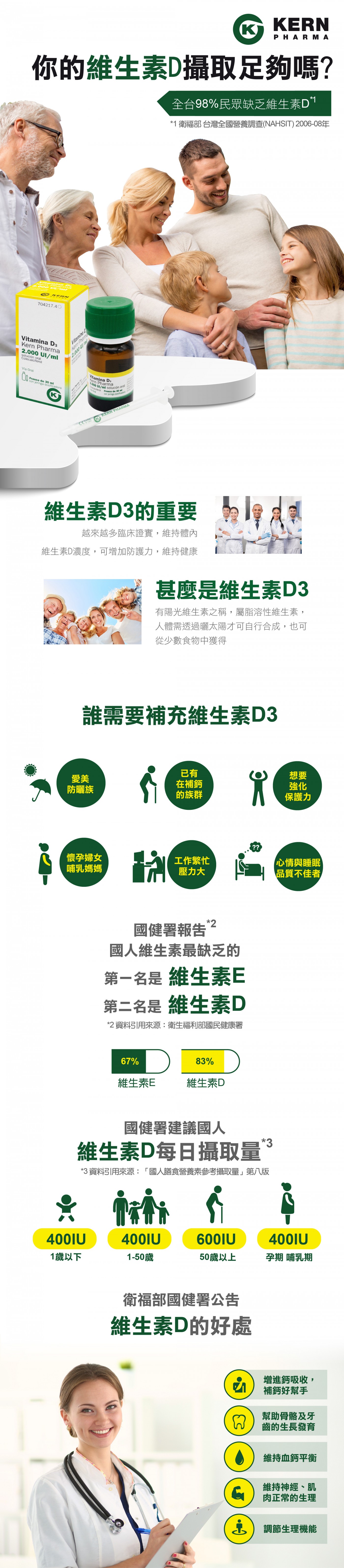 Kern藥廠維生素D3滴劑(非活性) 2000IU/ml, 30ml瓶裝