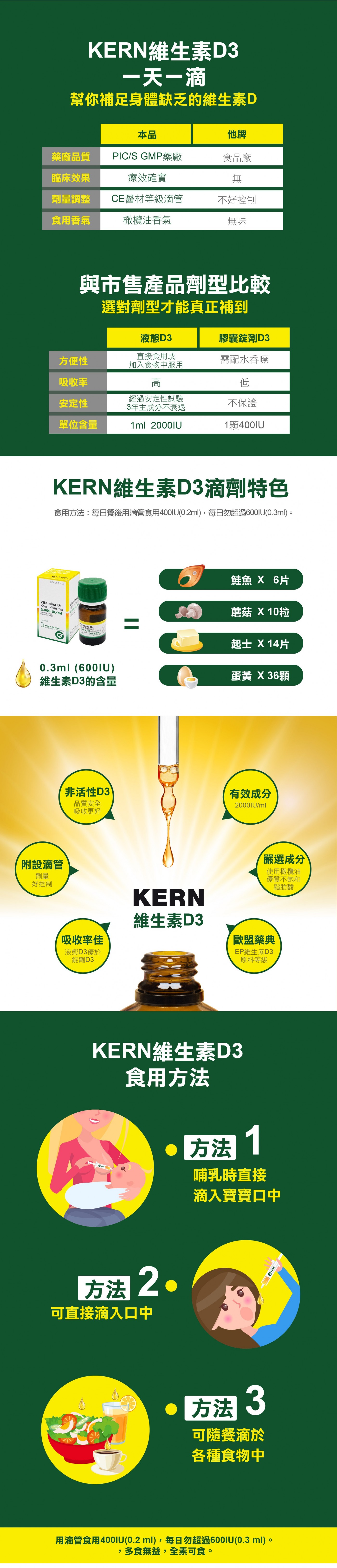 ●食用方法:每日餐後用滴管食用0.2毫升(400IU),每日勿超過0.3毫升(600IU)