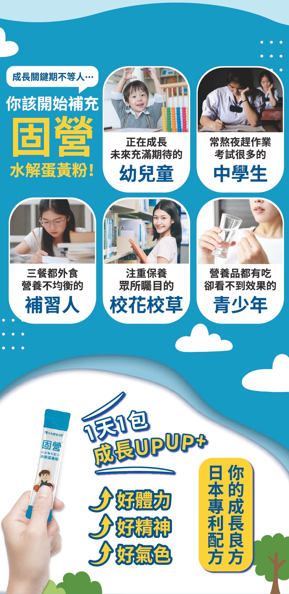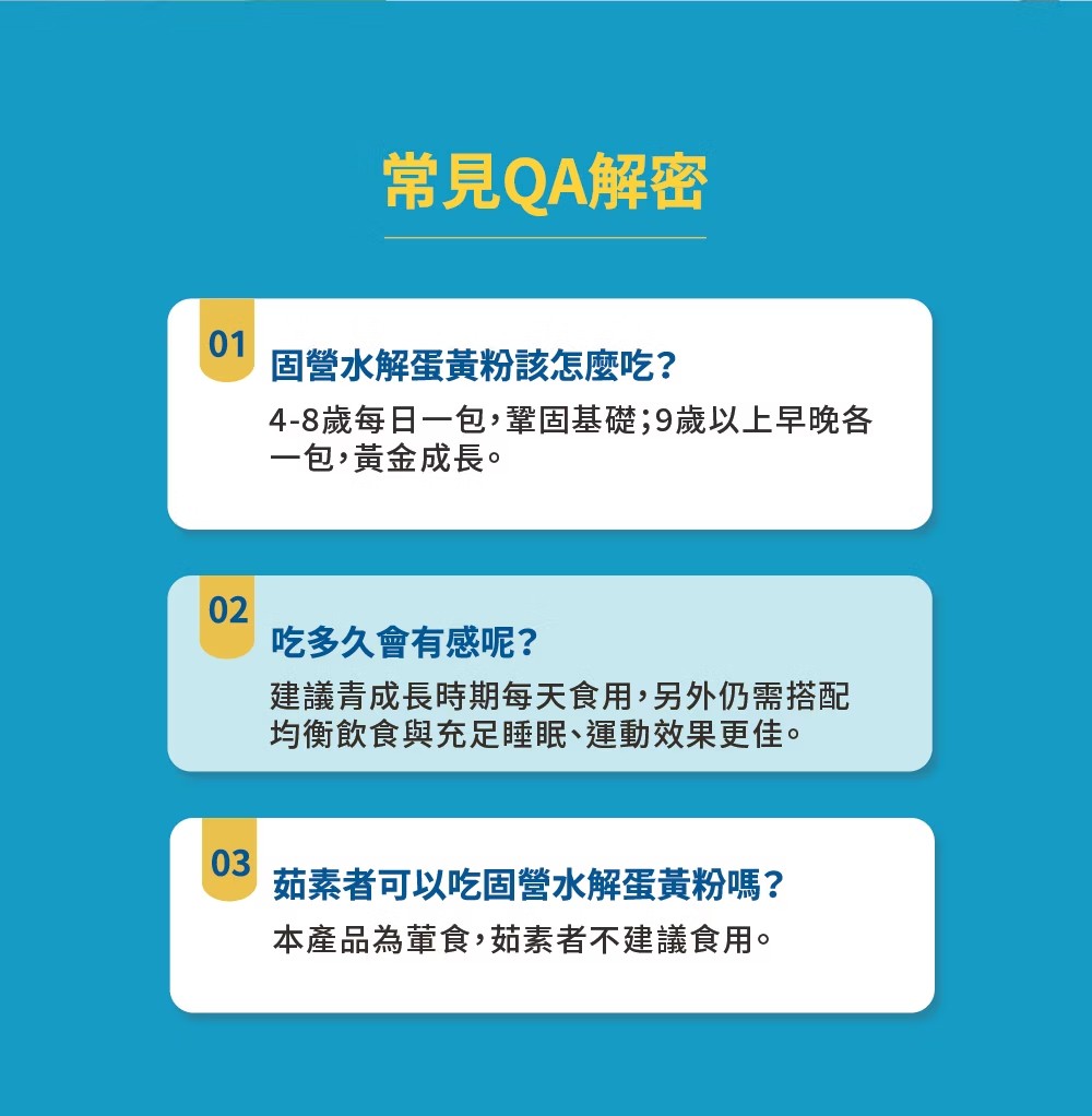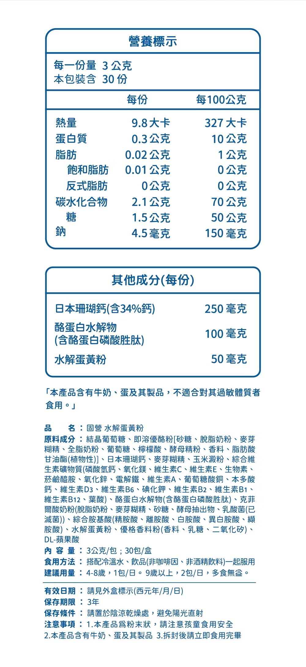 ●食用方式: 4-8歲,1包/日。9歲以上,2包/日,多食無益