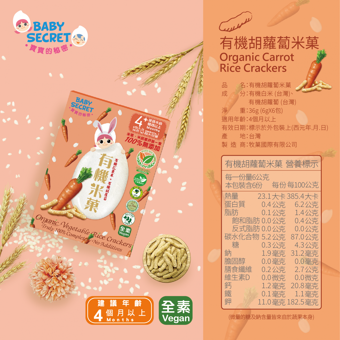 【BABY SECRET 寶寶的秘密】有機胡蘿蔔米菓(6g*6入)/盒