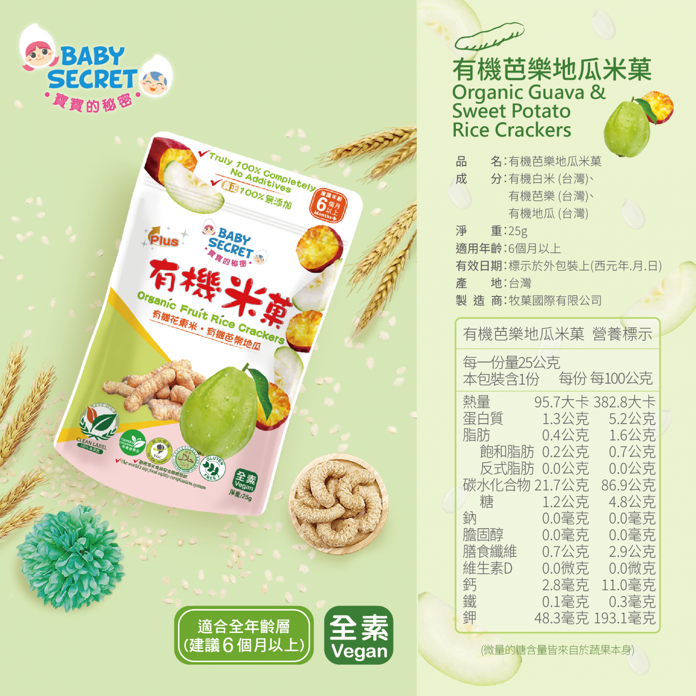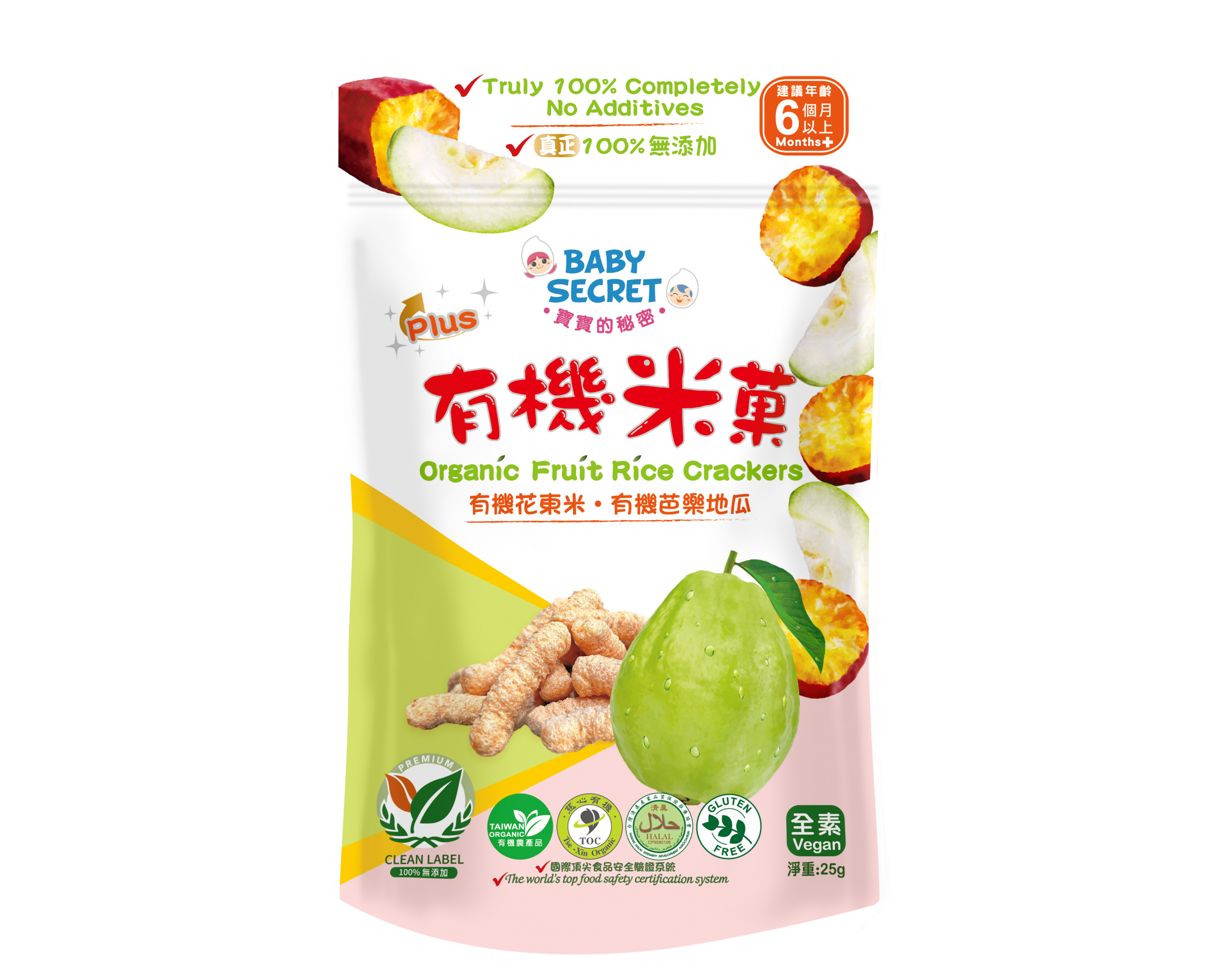 【BABY SECRET 寶寶的秘密】PLUS有機芭樂地瓜米菓(25g)/袋