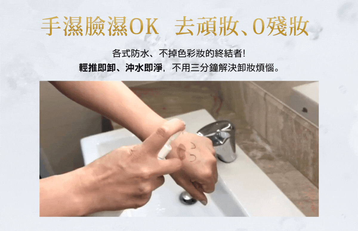 濕手濕臉也可輕鬆使用,無需乳化、不薰眼