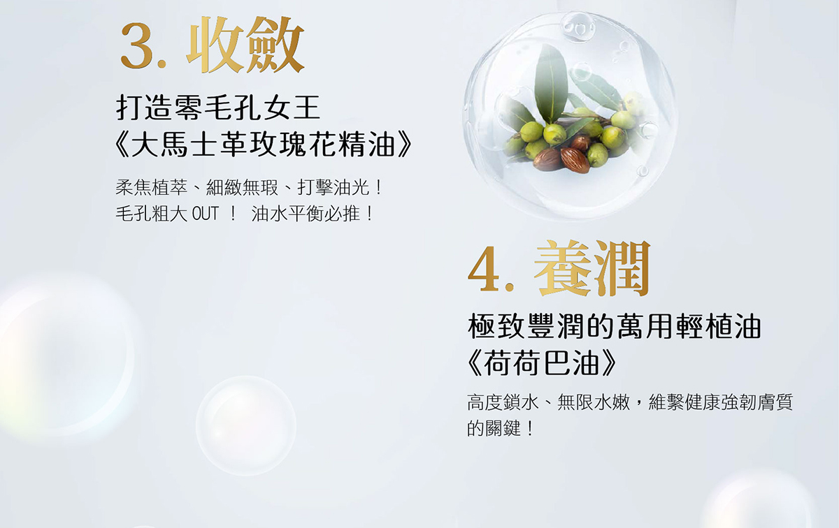 主成分:LPS玄米發酵多醣體, 桔橙果皮萃取物, 大馬士革玫瑰花油, 荷荷巴籽油