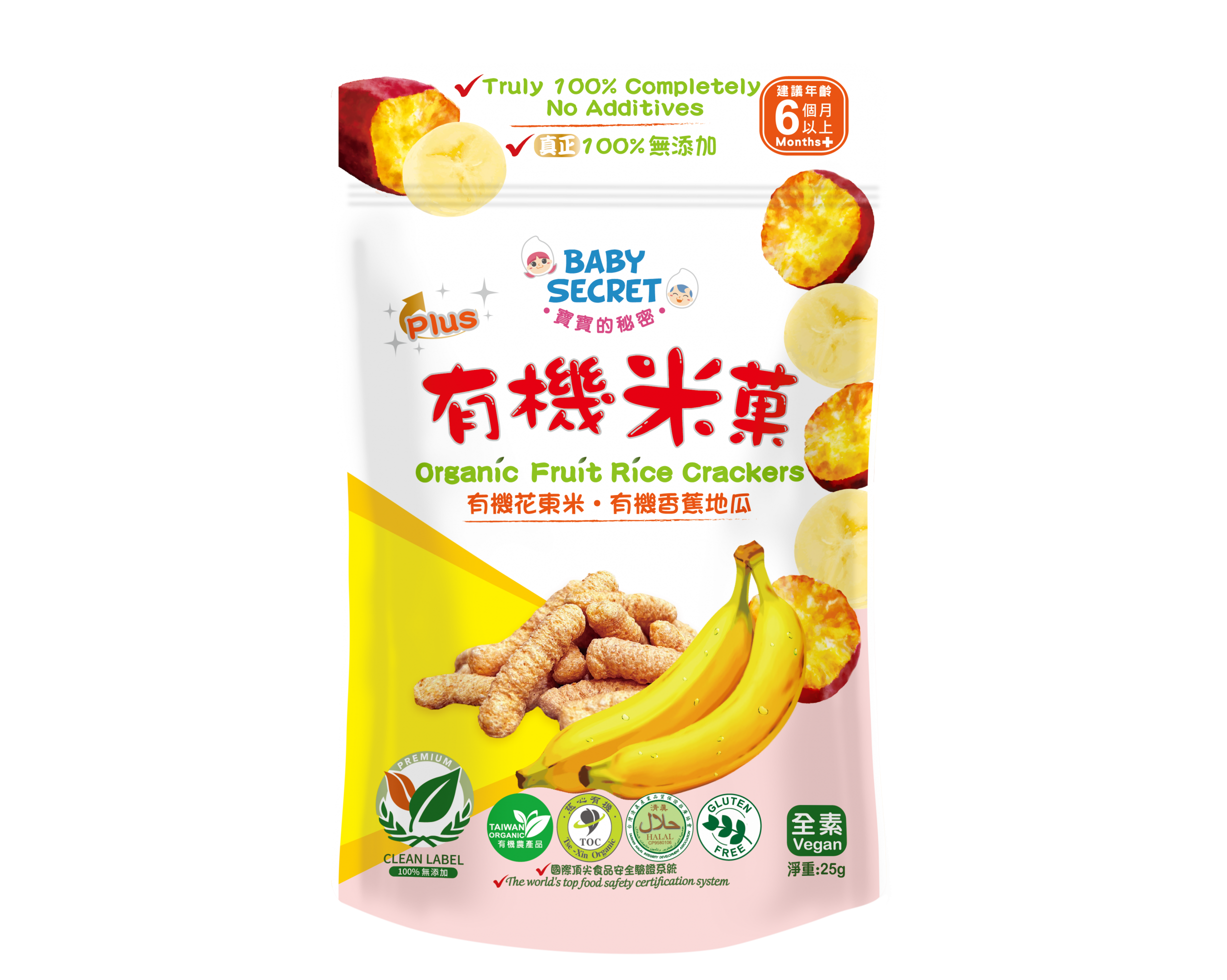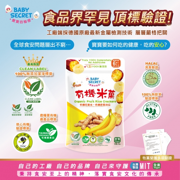 【BABY SECRET 寶寶的秘密】PLUS有機地瓜香蕉米菓(25g)/袋