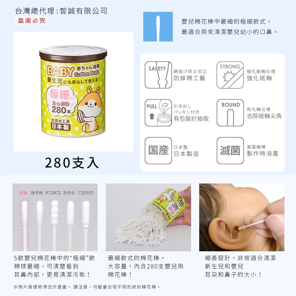 ●使用百分百棉,並有甲聚醣(CHITOSAN)抗菌加工處理!專為嬰幼兒設計之超細綿軸,可安心使用!