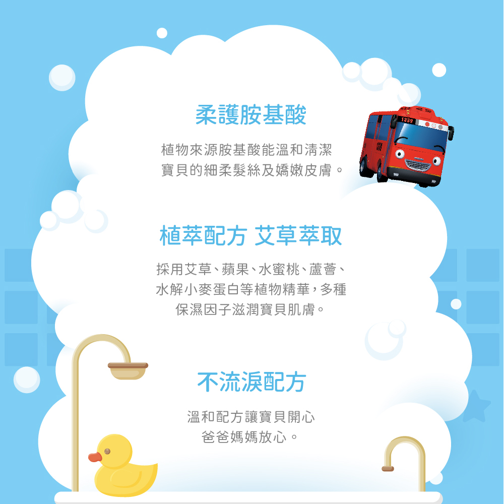 ●植物來源胺基酸,能溫和清潔寶貝的細柔髮絲及嬌嫩肌膚
