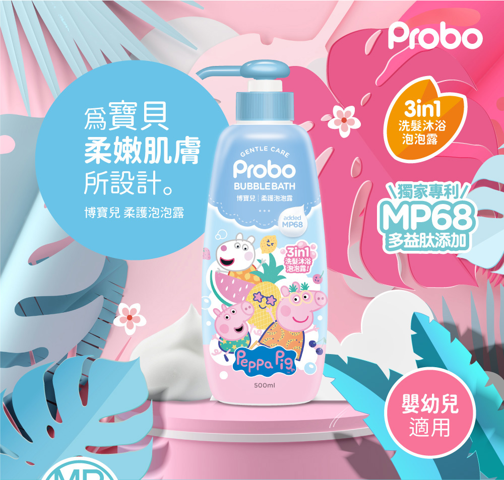 博寶兒|柔護泡泡露-佩佩豬500ml(全球專利MP68多益肽 植物來源胺基酸潔淨因子)