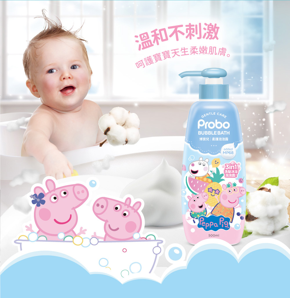• 博寶兒|柔護泡泡露-佩佩豬500ml(全球專利MP68多益肽 植物來源胺基酸潔淨因子)