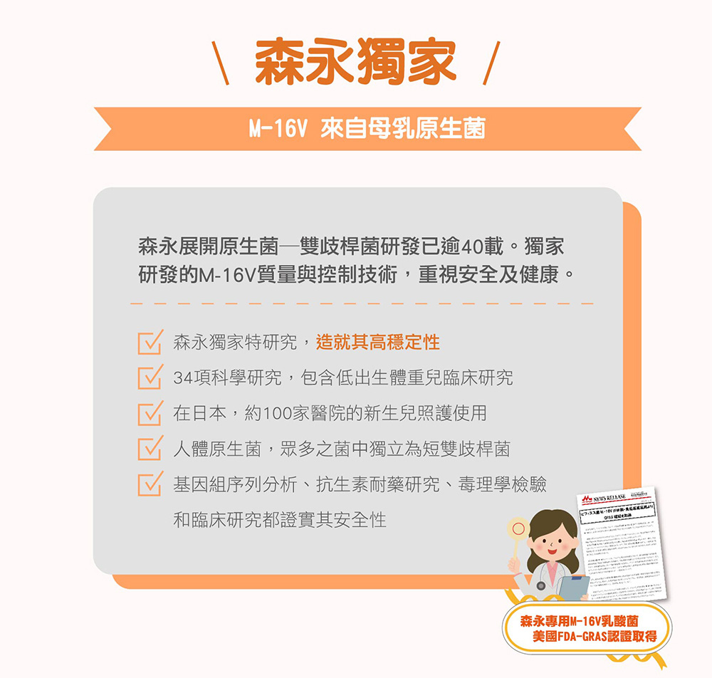 森永專利菌M-16V足量使用