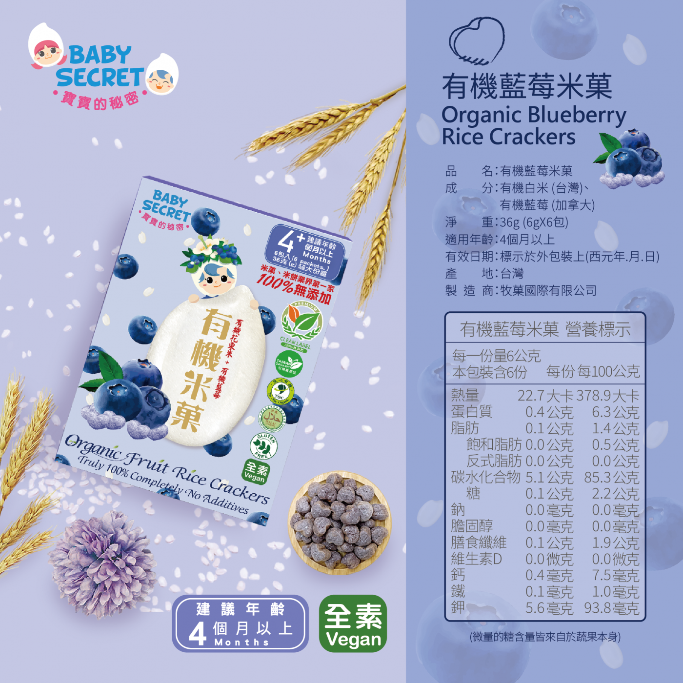 【BABY SECRET 寶寶的秘密】有機藍莓米菓(6g*6入)/盒