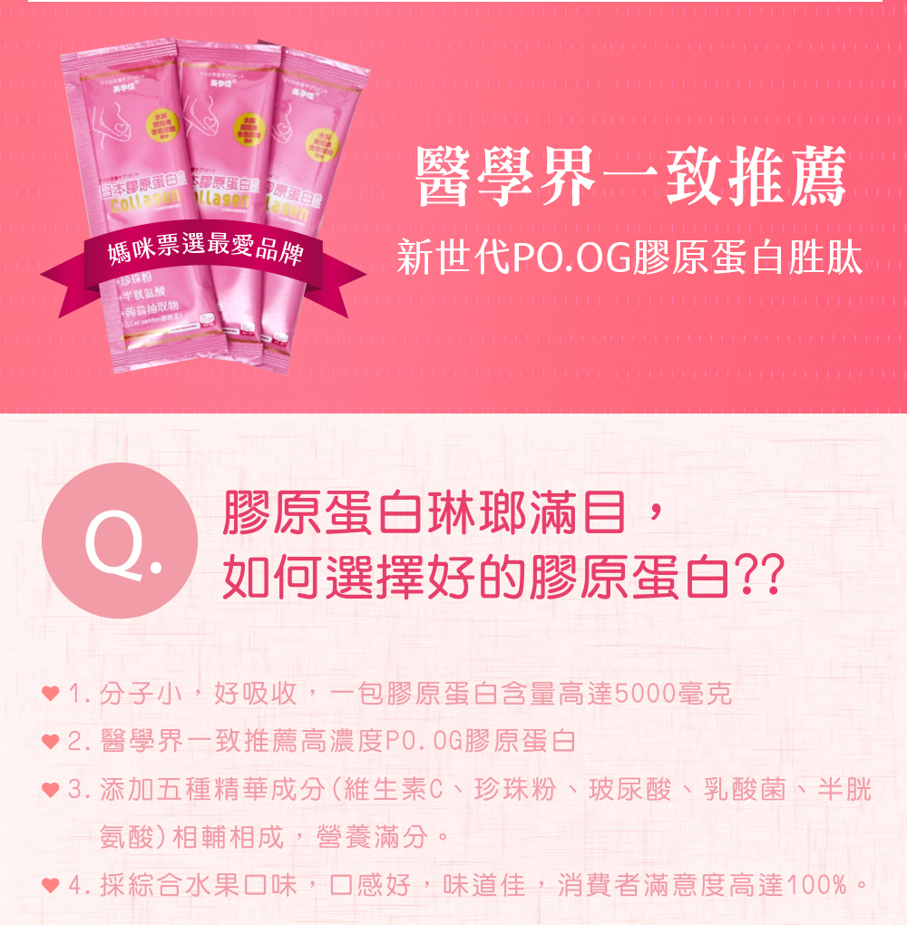 ●採用魚鱗膠原蛋白,添加五種精華成分相輔相成