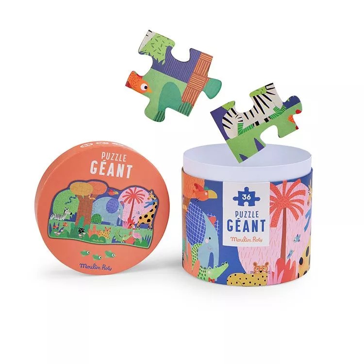 法國品牌 Moulin Roty 巨型綠洲拼圖-斑紋動物(36片)。須將對應的動物和自然符號與顏色配對。這套36塊巨型拼圖容易操作,讓動物朋友們在綠洲中一起度過快樂的時光。內含參考圖,幫助孩子拼湊拼圖。