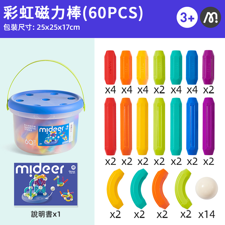 MiDeer 彩虹磁力棒(60PCS) 附收納桶