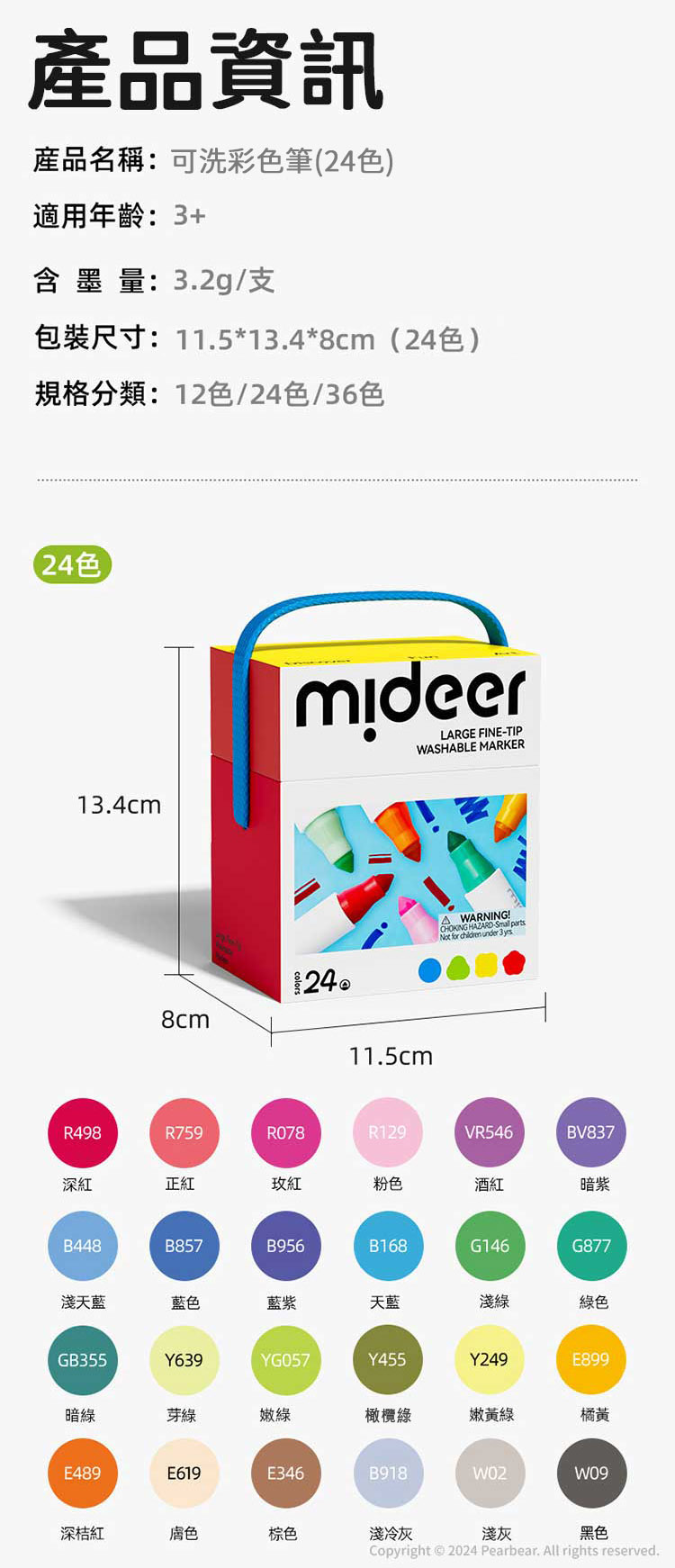 MiDeer 可洗式速乾絲綢蠟筆 (24色)