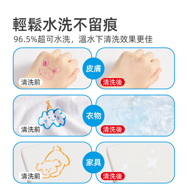 ●可洗彩色筆:色彩鮮豔不褪色,輕鬆清洗