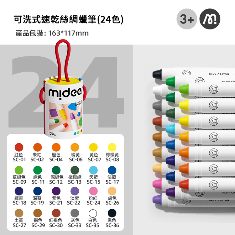 MiDeer 可洗式速乾絲綢蠟筆 (24色)