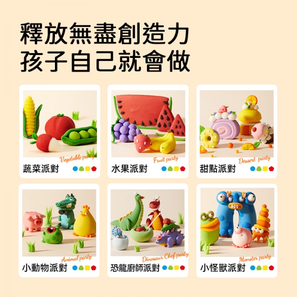 乾淨無化學添加,純天然小麥發酵味!適合低齡寶寶玩樂,寶寶嗨玩更放心。好塑形,手感細膩柔軟,輕鬆塑造孩子的創意。持續揉搓不髒小手,不會黏手、黏盒、黏桌、掉渣,貼心軟膠蓋密封性更強,阻隔空氣,黏土不易乾,更耐玩。