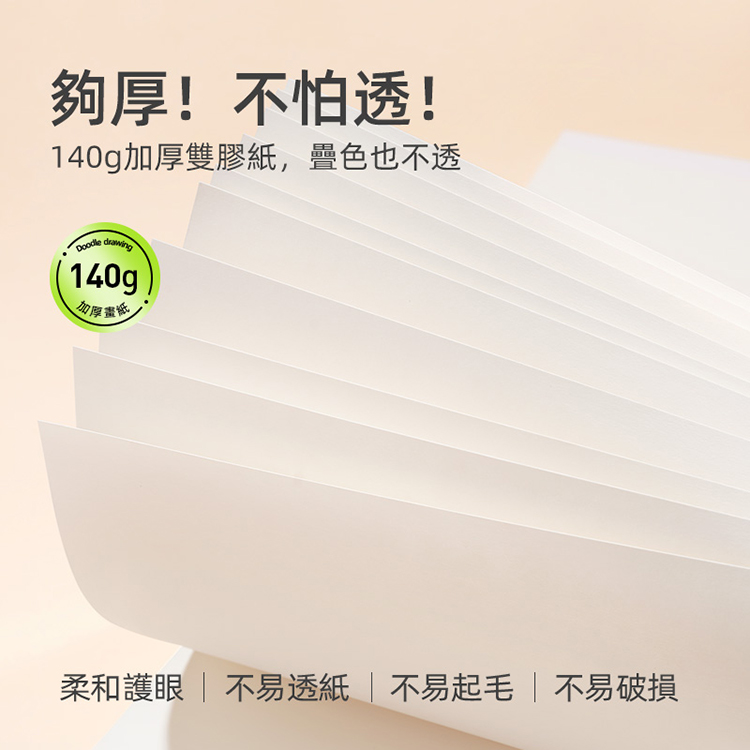 ●採用加厚防透的140g雙膠紙,厚實耐用,適合多種繪畫工具使用