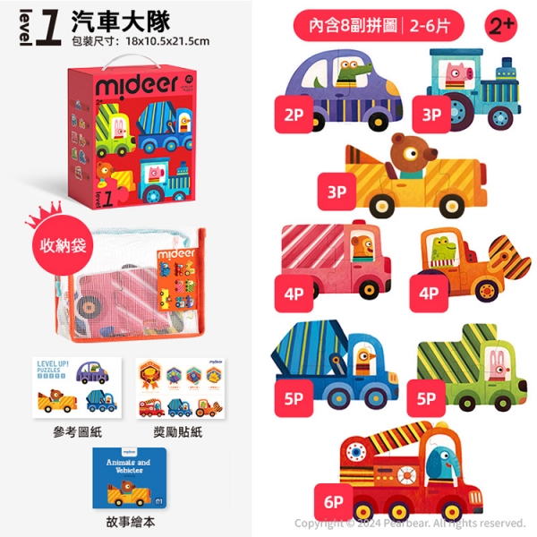 MiDeer 進階式拼圖-汽車大隊(LEVEL1)