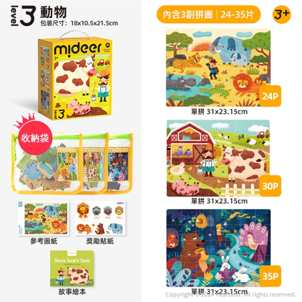MiDeer 進階式拼圖-動物(LEVEL3)