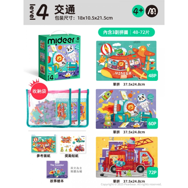 MiDeer 進階式拼圖-交通(LEVEL4)