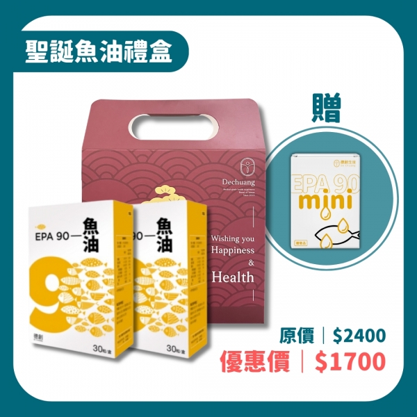 德創生技x聖誕魚油禮盒|EPA90 mini高機能魚油(30顆/盒 兩入)贈體驗組魚油 6 顆