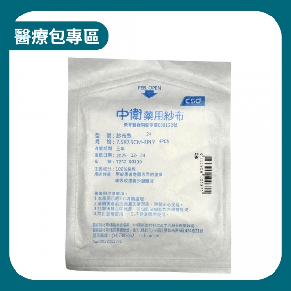 醫療器材許可證所載品名:中衛藥用紗布 (滅菌/未滅菌)