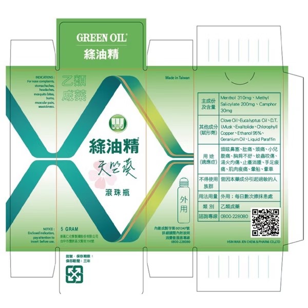 醫療器材許可證所載品名:綠油精