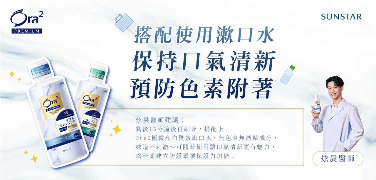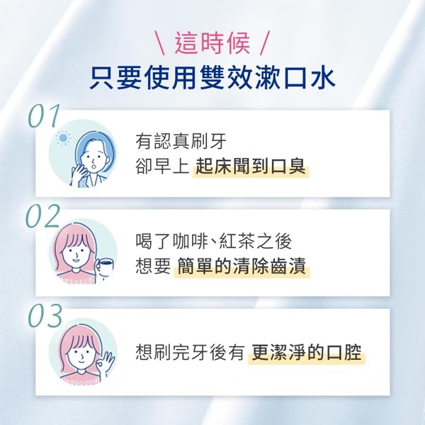 ●雙重清潔整個口腔,清除異味細菌和有色汙漬