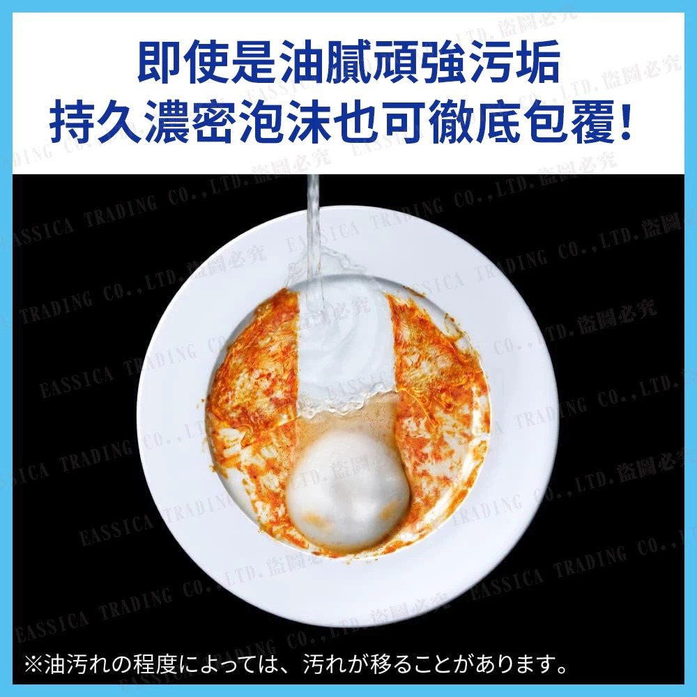 ●濃密泡沫可迅速分解去除碗盤上的油膩頑強污垢,清潔力佳易於沖淨,洗後的碗盤給您觸覺與聽覺的潔淨感,且溫和呵護雙手