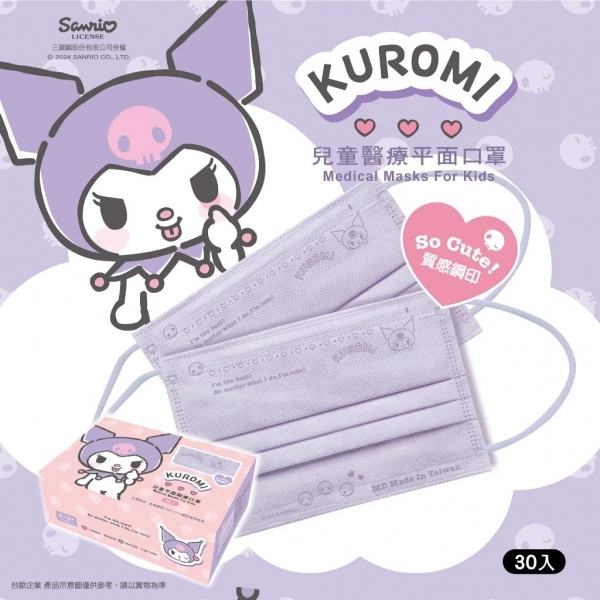 台歐 三麗鷗 酷洛米 兒童平面鋼印醫療口罩-調皮款薰衣草紫-30入