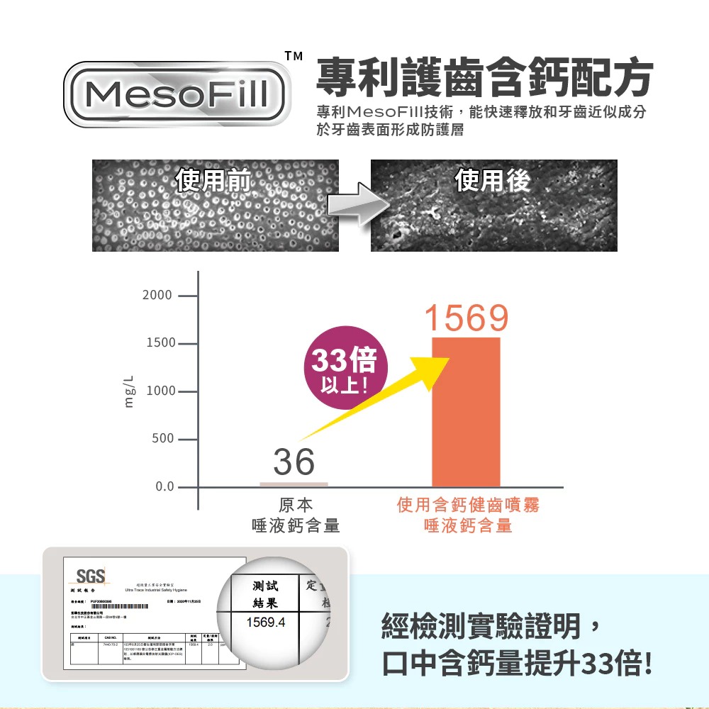 ● 獨家護齒技術MesoFill,升級配方 ‧ 幫助口中含鈣量快速提升33倍以上