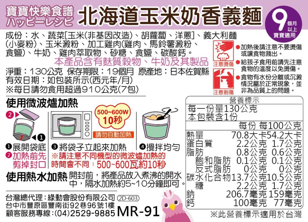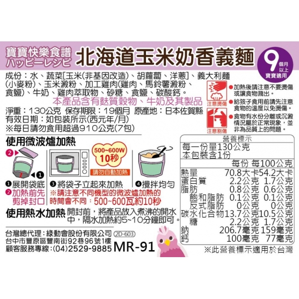 【日本kewpie】北海道玉米奶香義麵130g (9M)