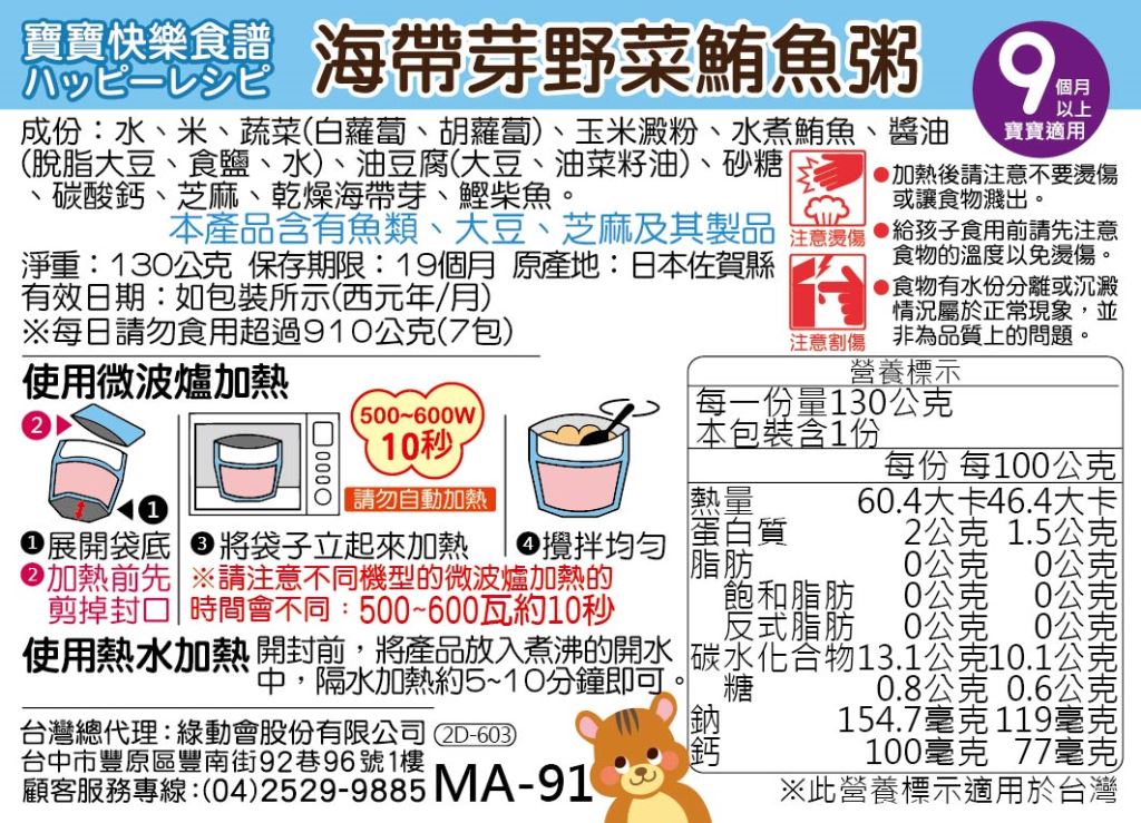 【日本kewpie】海帶芽野菜鮪魚粥130g (9M)