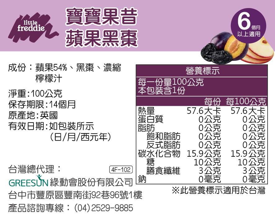 【英國Little Freddie】寶寶果昔-蘋果黑棗100g (6m)