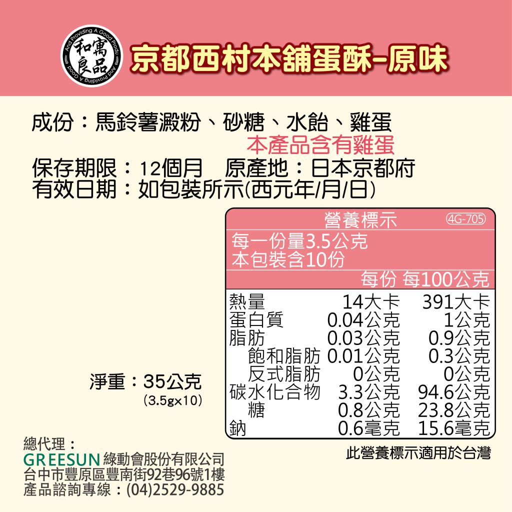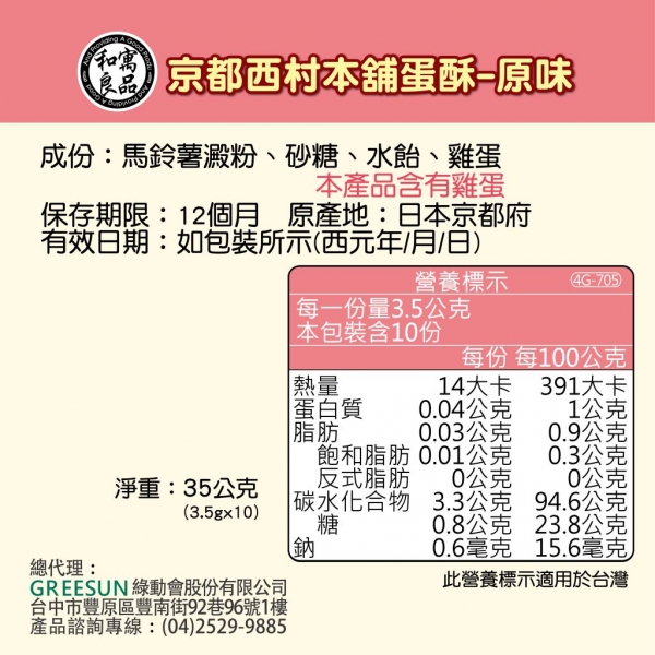 【日本和寓良品】京都西村本舖蛋酥-原味35g(12M)