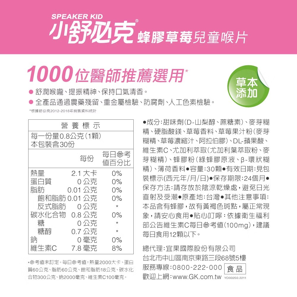 維維樂 舒必克蜂膠兒童喉片(草莓口味)