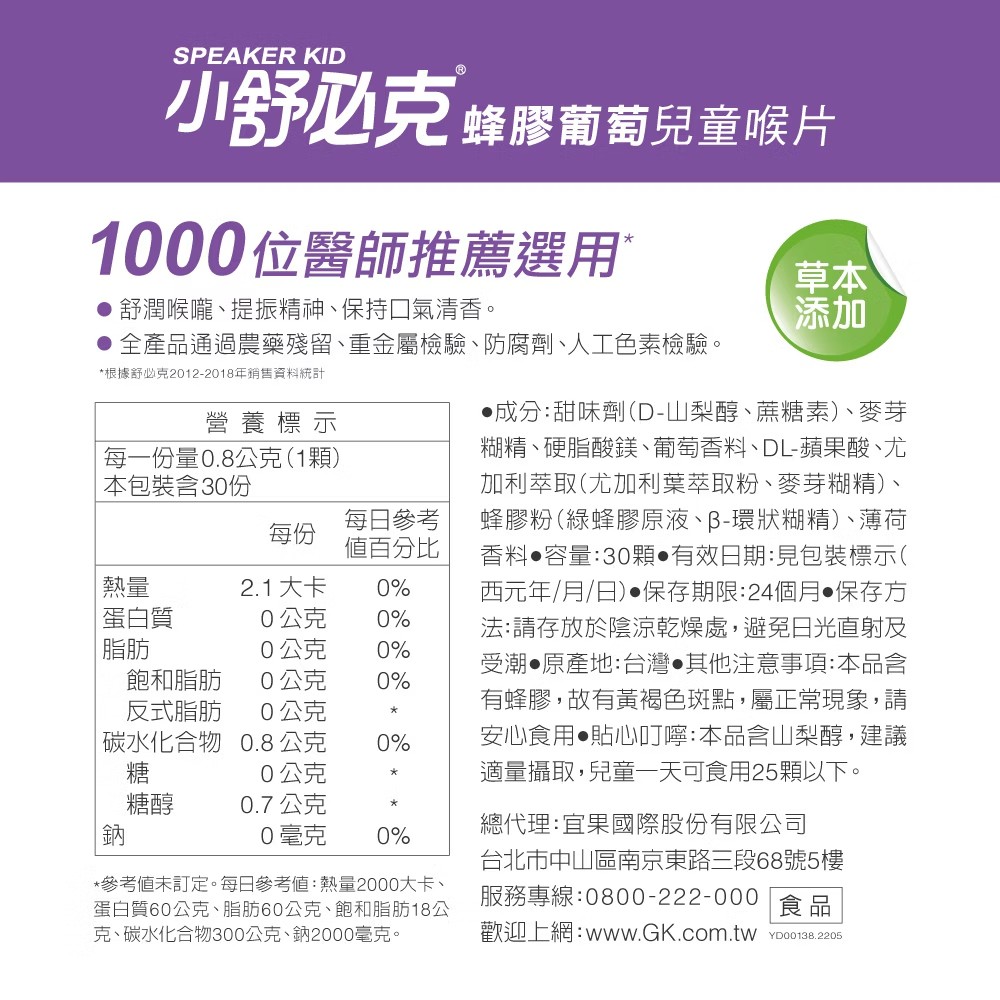 維維樂 舒必克蜂膠兒童喉片(葡萄口味)