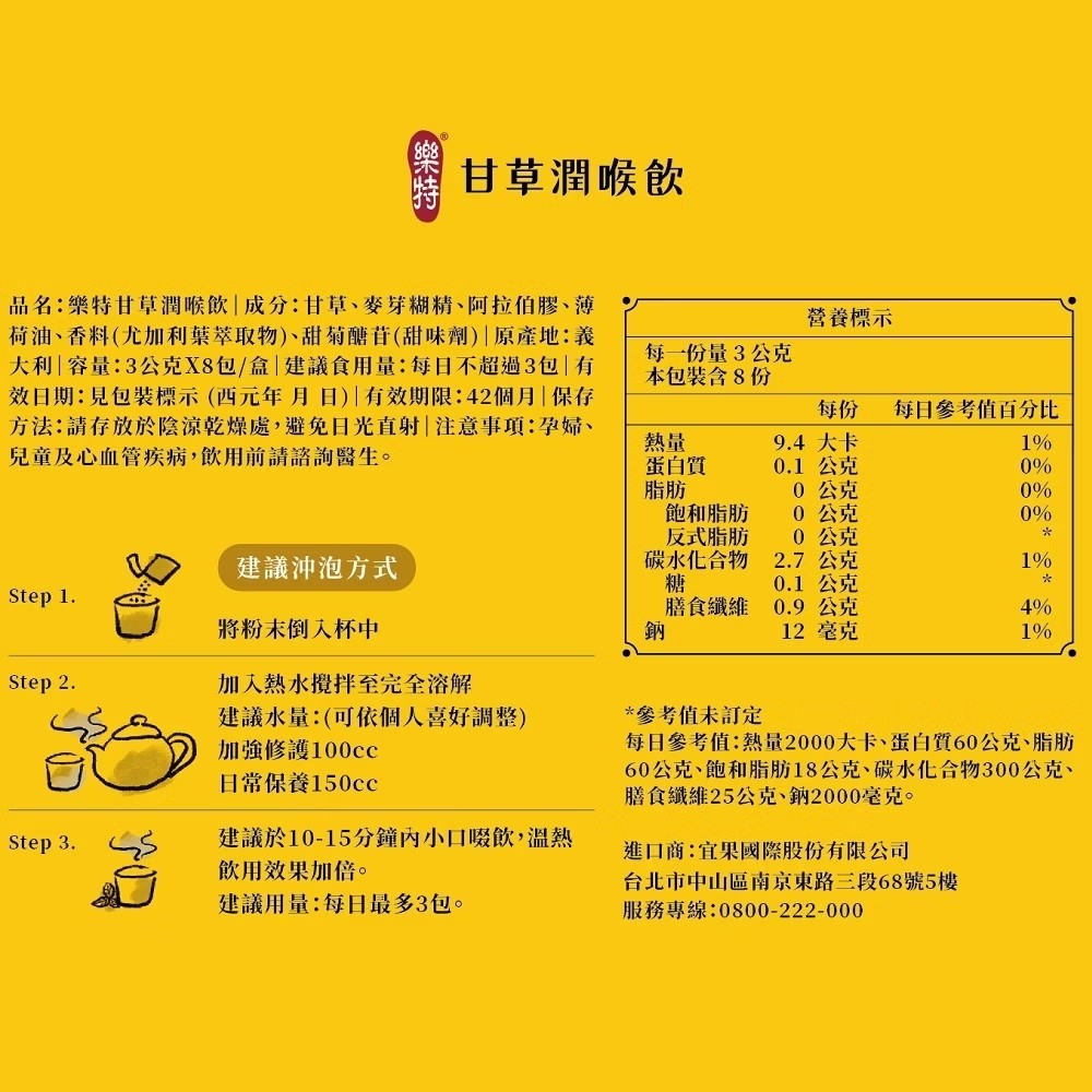 維維樂 樂特 甘草潤喉飲 3g*8包/盒