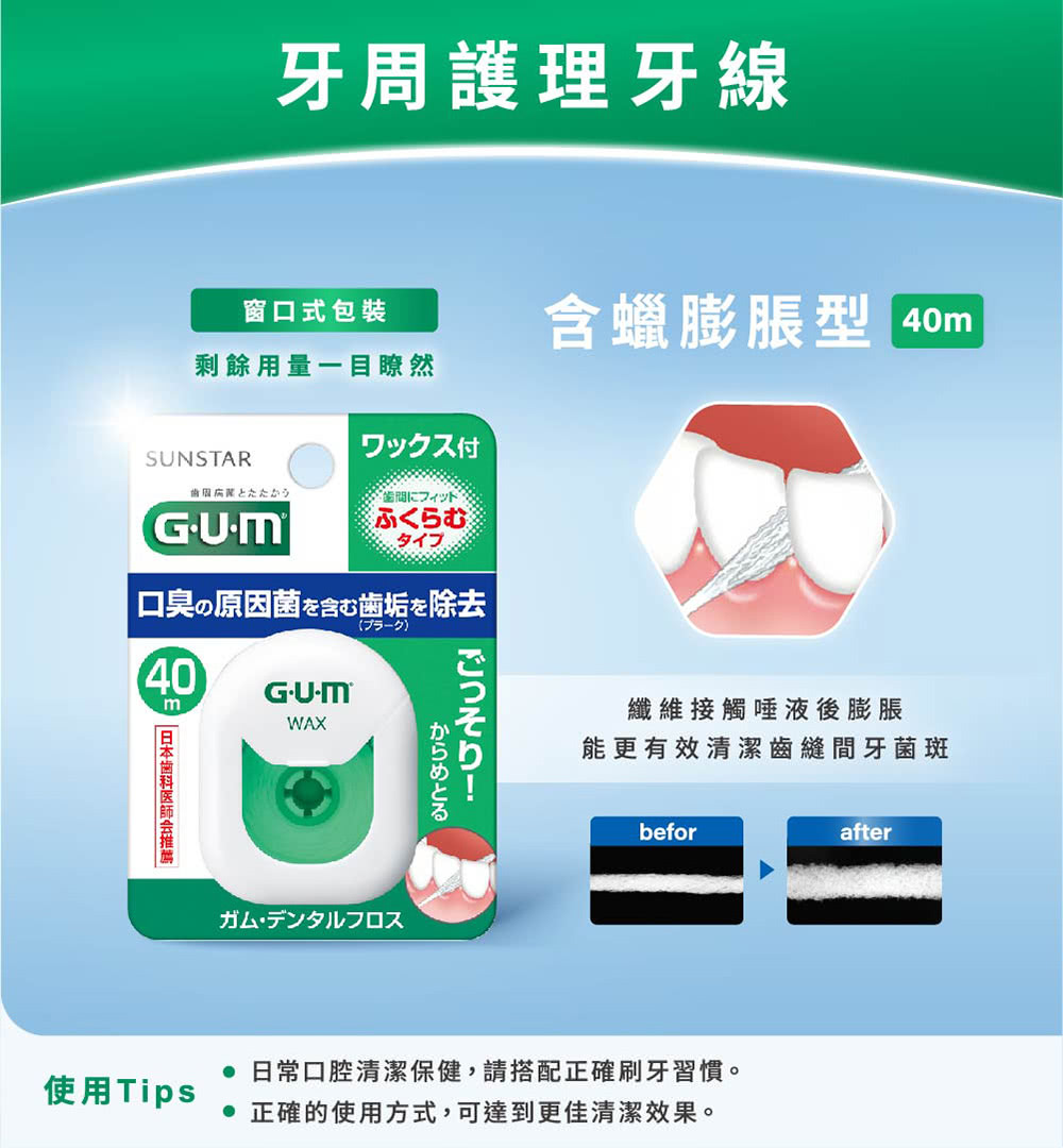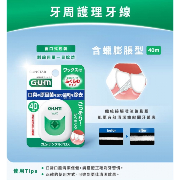 GUM牙周護理牙線 (含蠟膨脹型)-40m