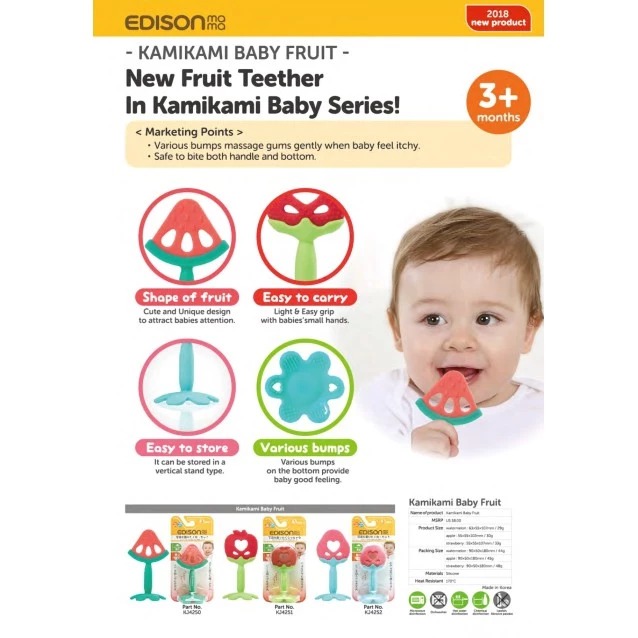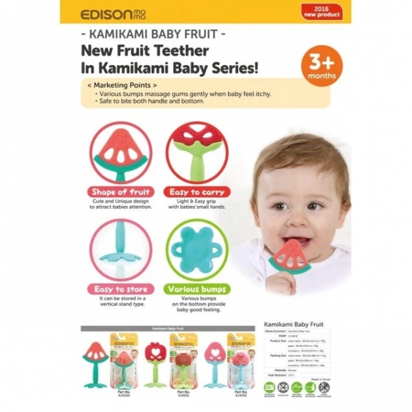 ●讓人忍不住想拍照的可愛水果形狀;矽膠材質,適當的柔軟度口感極佳,任何地方都方便寶寶咬合;寶寶小手易抓握造型;底下特殊造型能使產品方便站立保管。